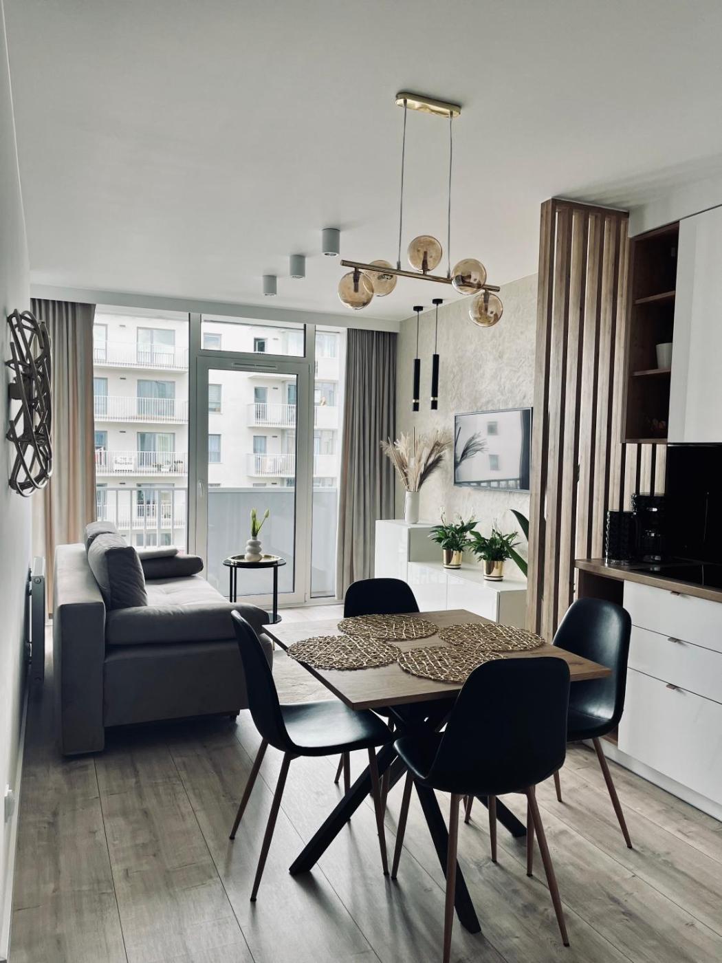 Apartament z 1 sypialnią. Featuring a private entrance, this apartment consists of 1 living room, 1 separate bedroom and 1 bathroom with a walk-in shower and a hairdryer. Guests can make meals in the kitchenette that is equipped with a stovetop, a refrigerator, a dishwasher and kitchenware. Boasting a terrace with city views, this apartment also provides a washing machine and a flat-screen TV with satellite channels. The unit offers 2 beds. Apartament - 4 osobowy. Powierzchnia pokoju ok.: 45 mkw.