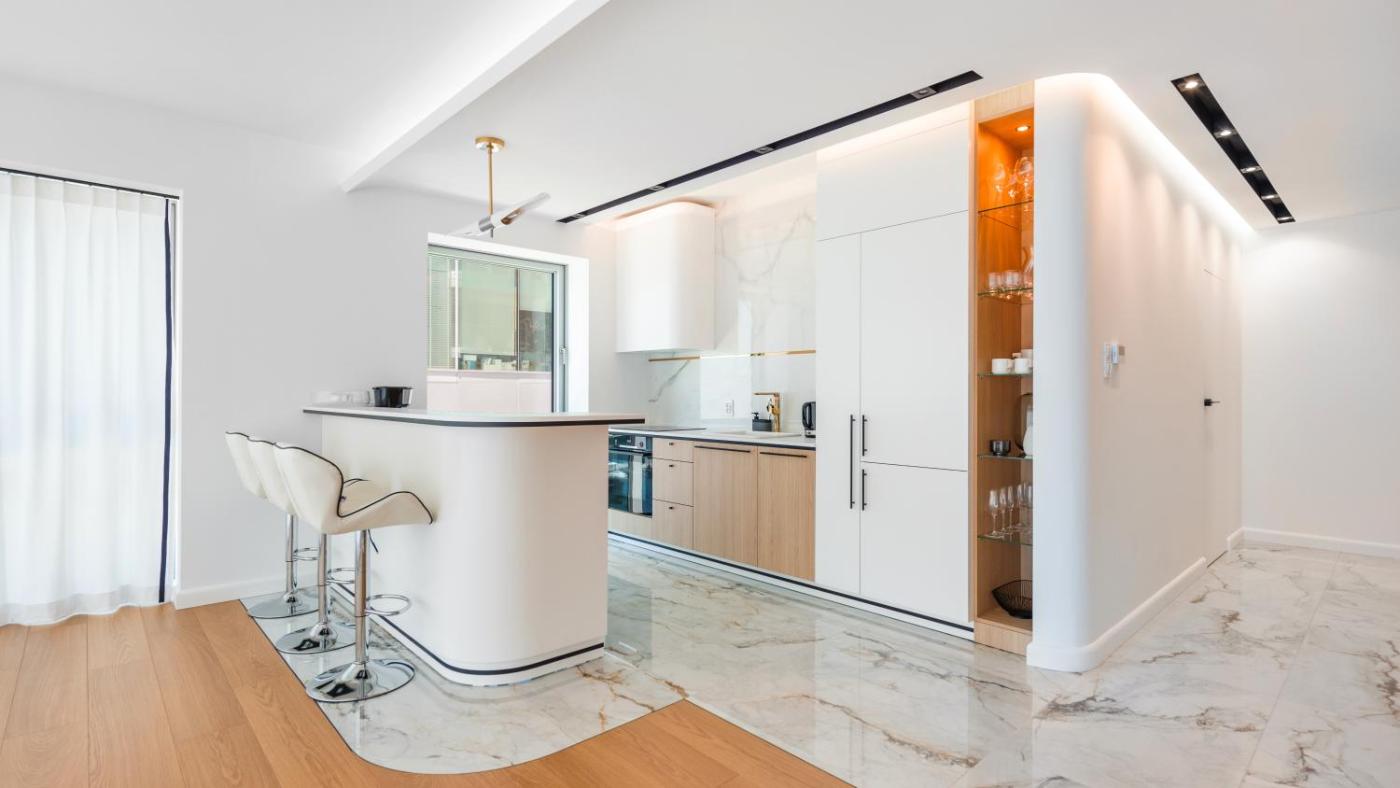 Każda opcja zakwaterowania ma balkon i wyposażona jest w telewizor z płaskim ekranem oraz pralkę. We wszystkich opcjach znajduje się aneks kuchenny z pełnym wyposażeniem, w tym lodówką, jak również część wypoczynkowa z rozkładaną sofą oraz prywatna łazienka z prysznicem i bezpłatnym zestawem kosmetyków. Wyposażenie obejmuje także zmywarkę, piekarnik, płytę kuchenną, ekspres do kawy i czajnik.