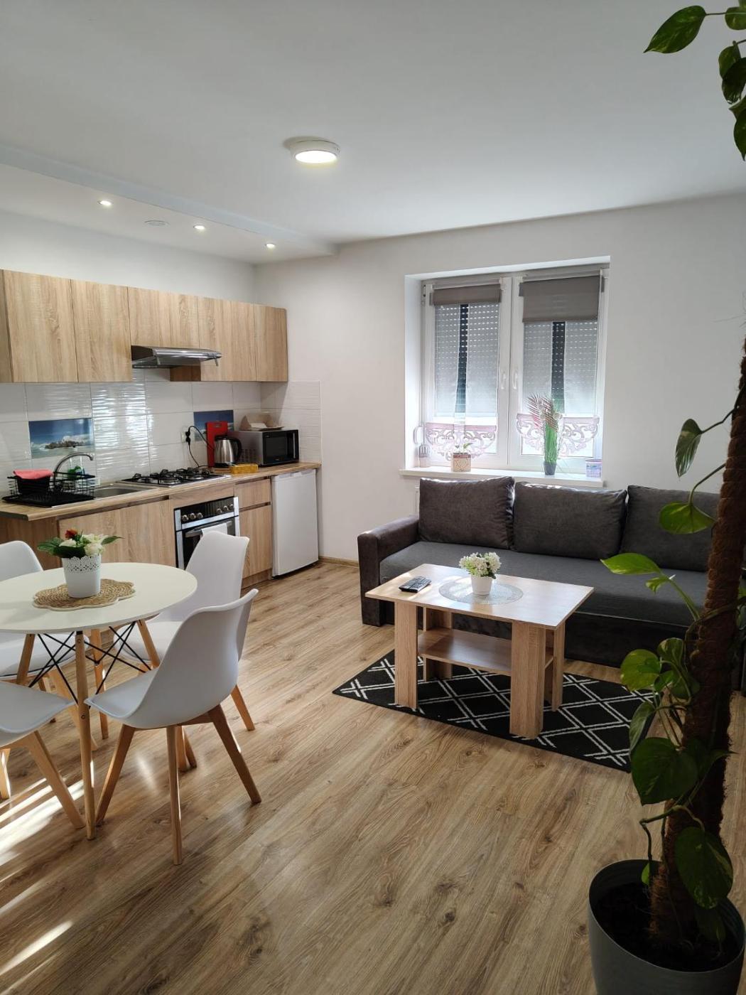 Apartament z 2 sypialniami. This apartment consists of a kitchen, a seating area, 2 separate bedrooms and 1 bathroom with a shower. Guests will find a stovetop, a refrigerator, kitchenware and an oven in the fully equipped kitchen. The apartment also offers a barbecue. The apartment provides a washing machine, a dining area, a wardrobe, an electric kettle and a flat-screen TV with cable channels. The unit offers 4 beds. Apartament - 4 osobowy. Powierzchnia pokoju ok.: 30 mkw. ;