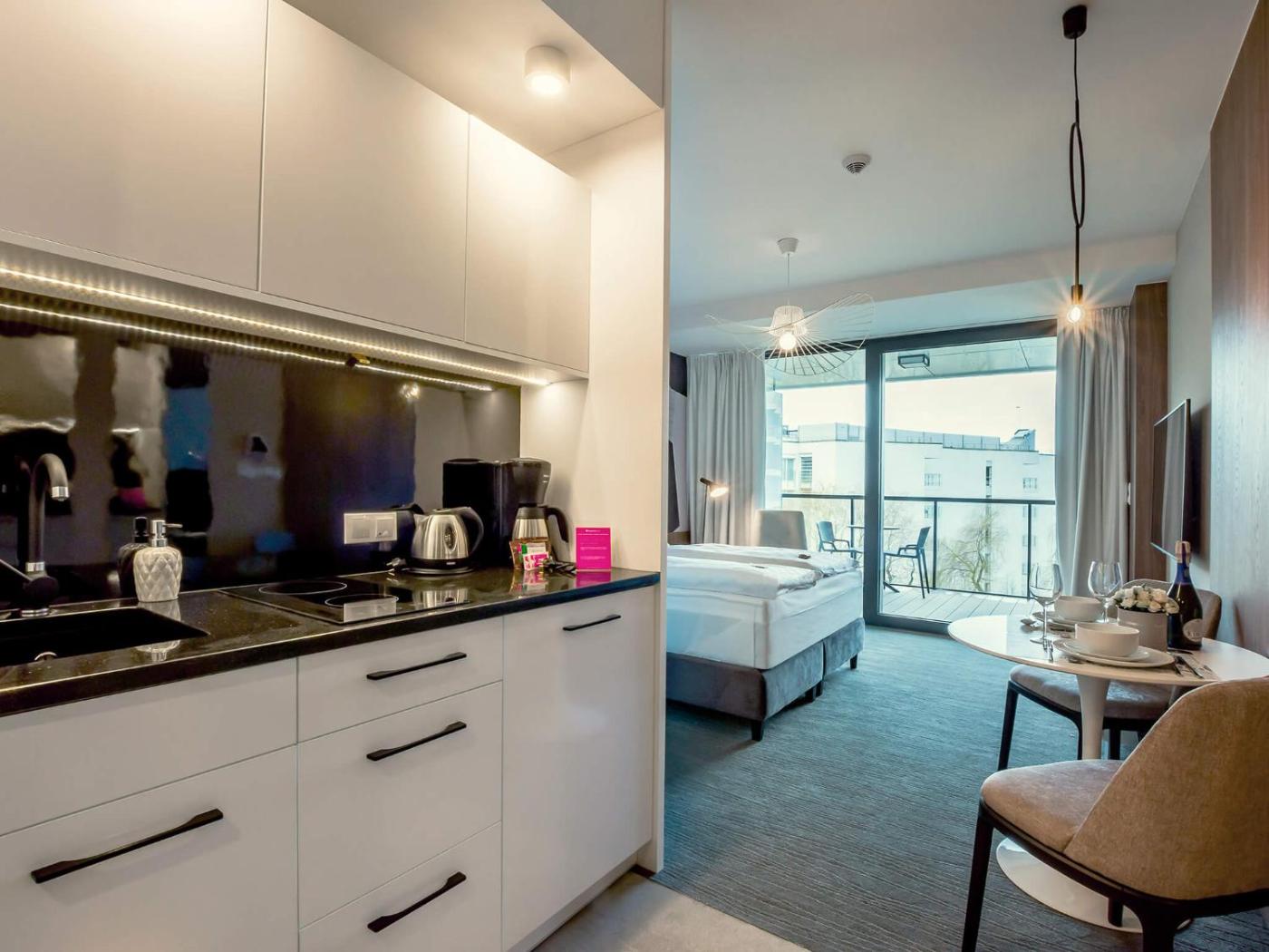 Apartament typu Studio z tarasem. Guests can make meals in the kitchenette that features a stovetop, a refrigerator, kitchenware and an electric kettle. This studio is comprised of a flat-screen TV with cable channels, a private bathroom as well as a terrace with sea views. The unit has 1 bed. Studio - 2 osobowy. Powierzchnia pokoju ok.: 27 mkw.