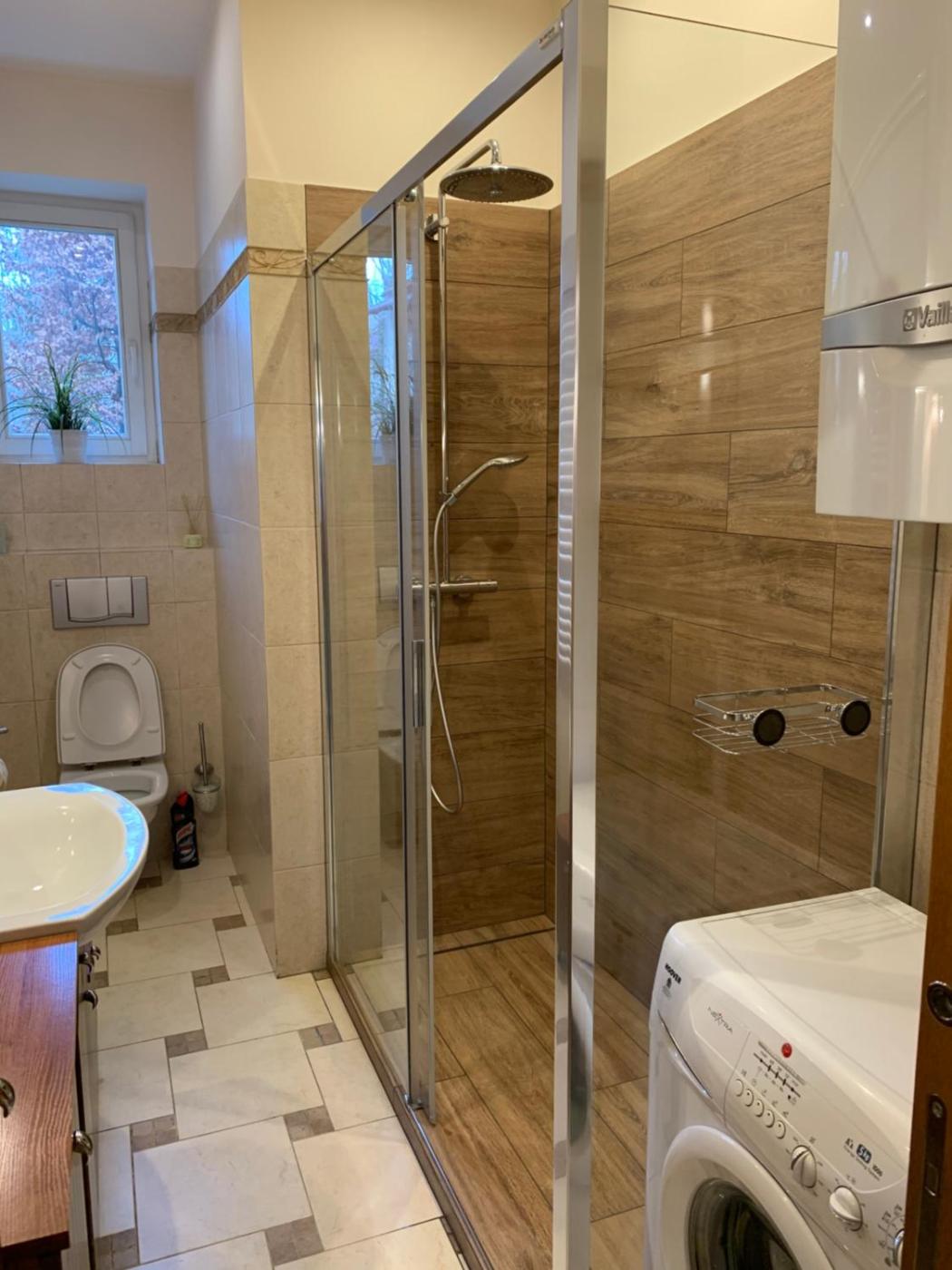 Apartament z balkonem. Boasting a private entrance, this apartment comes with 1 living room, 1 separate bedroom and 1 bathroom with a walk-in shower and a hairdryer. In the fully equipped kitchen, guests will find a stovetop, a refrigerator, a dishwasher and kitchenware. This apartment has a washing machine, flat-screen TV with cable channels, garden views, as well as chocolate for guests. The unit has 2 beds. Apartament - 4 osobowy. Powierzchnia pokoju ok.: 60 mkw.