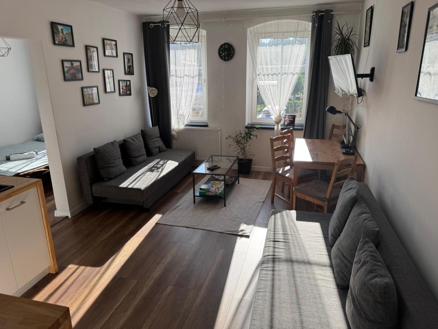 Apartament z 1 sypialnią. The apartment has 1 bedroom, 1 bathroom and a kitchenette. The apartments kitchenette is available for cooking and storing food. This apartment features a washing machine, heating and a flat-screen TV. The unit has 1 bed. Apartament - 2 osobowy. Powierzchnia pokoju ok.: 36 mkw.