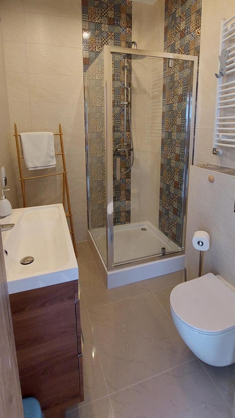 Pokój Dwuosobowy typu Deluxe. The double room provides parquet floors and heating, as well as a private bathroom boasting a walk-in shower. The air-conditioned double room features a flat-screen TV with satellite channels, soundproof walls, a wardrobe, an electric kettle as well as sea views. The unit has 1 bed. Pokój Dwuosobowy - 2 osobowy. Powierzchnia pokoju ok.: 13 mkw. ;