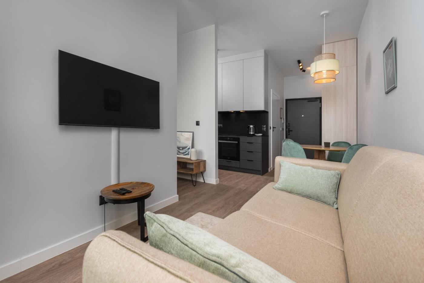 Apartament z 1 sypialnią. This air-conditioned apartment features 1 living room, 1 separate bedroom and 1 bathroom with a shower. In the well-equipped kitchen, guests will find a stovetop, a refrigerator, a dishwasher and kitchenware. The apartment features a flat-screen TV, a washing machine, a dining area, a wardrobe as well as city views. The unit has 2 beds. Apartament - 4 osobowy. Powierzchnia pokoju ok.: 32 mkw.